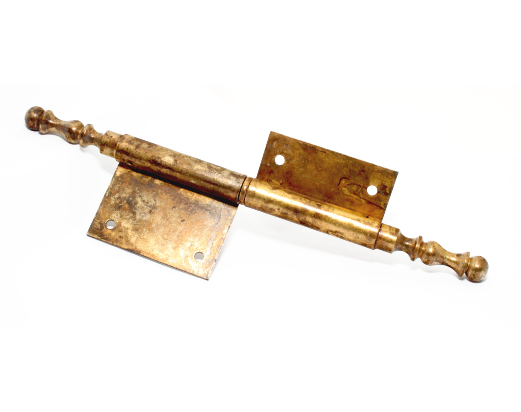 Cerniera in ferro ottonato anticato con testine lavorate stile barocco.